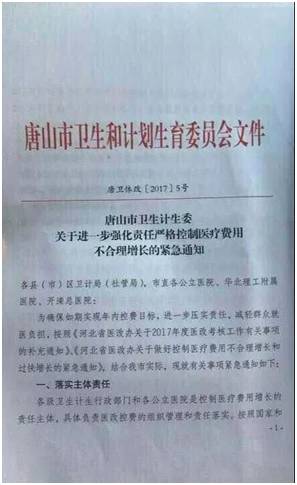 日前,河北省唐山市衛計委的一份緊急控費通知流出。