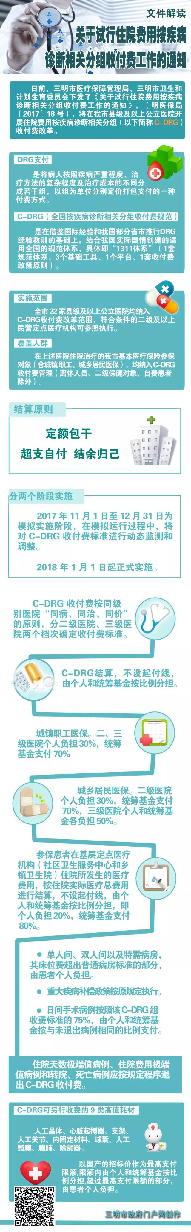 2018年1月1日,C-DRG將在三明全市22家縣級及以上公立醫院正式實施。
