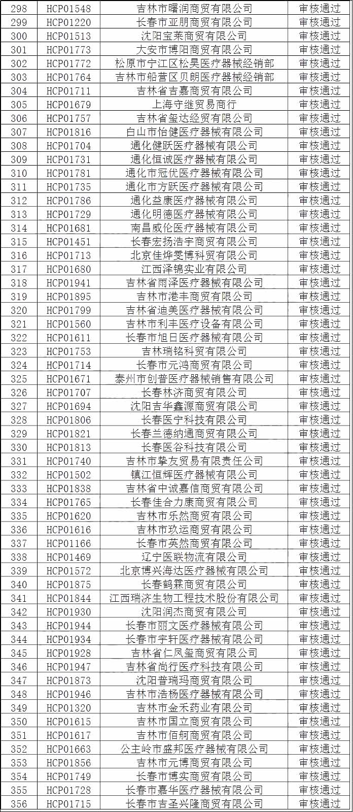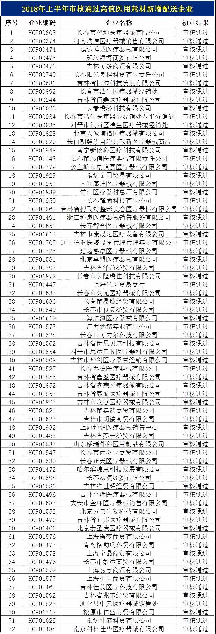 一共有356家耗材配送商通過審核,意味著這356家耗材配送商將進入吉林省藥2018年上半年高值耗材配送。