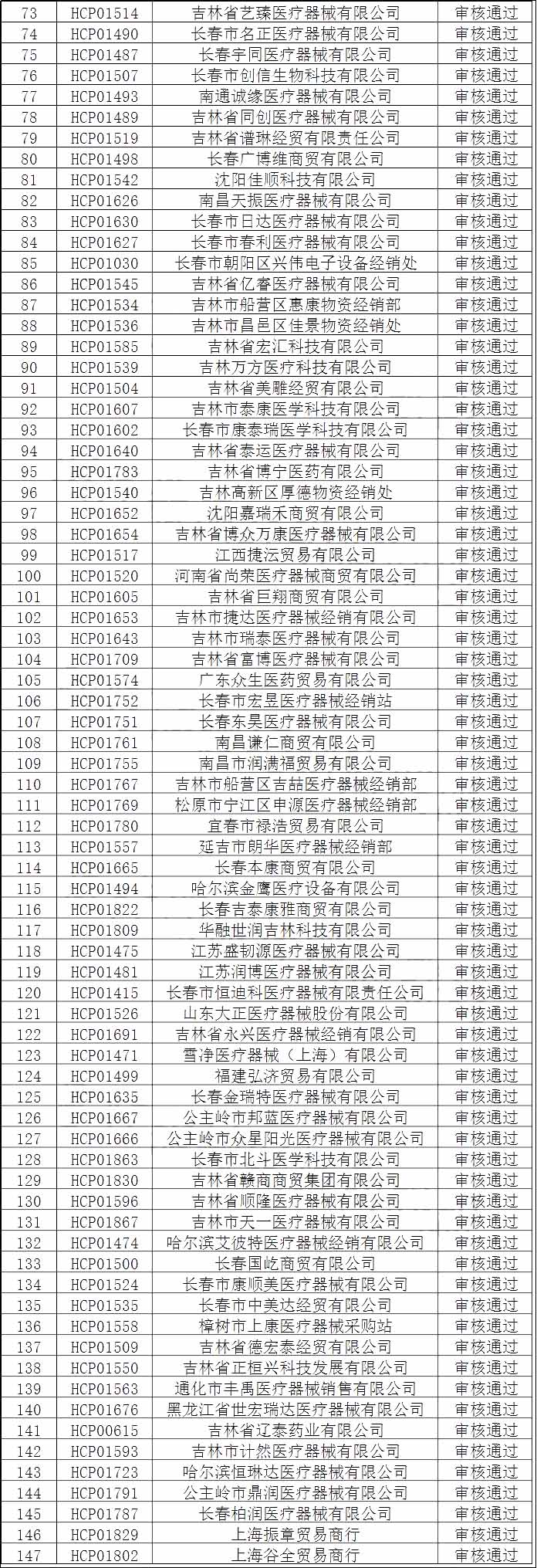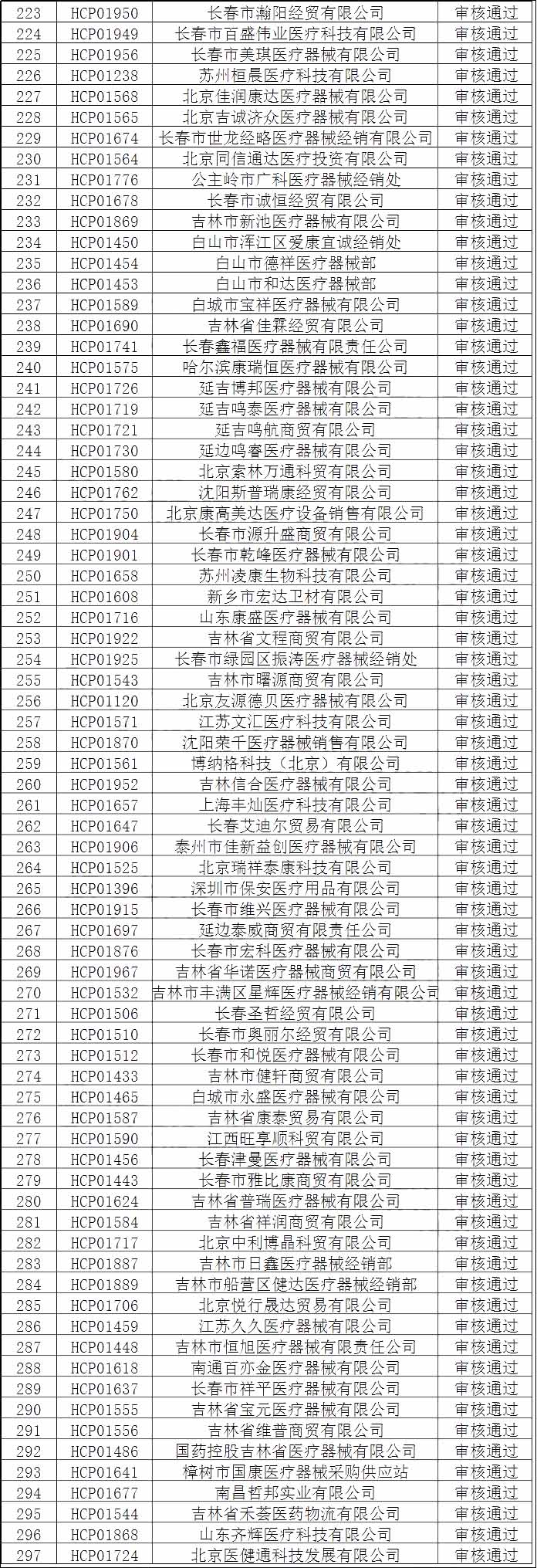 以下為最新公布的遼寧省審核通過的356家審核通過、32家審核不通過的耗材配送商名單。