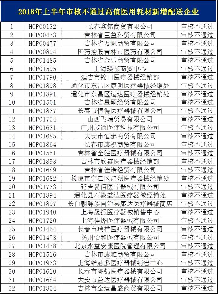 另外32家耗材配送商審核不通過,其中包括國藥控股子公司。