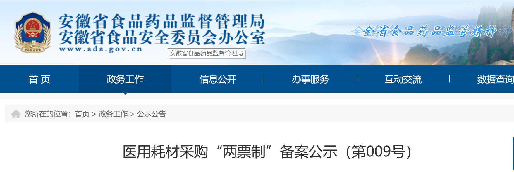 近日,安徽省藥監局發布《醫用耗材采購“兩票制”備案公示(第009號)》。