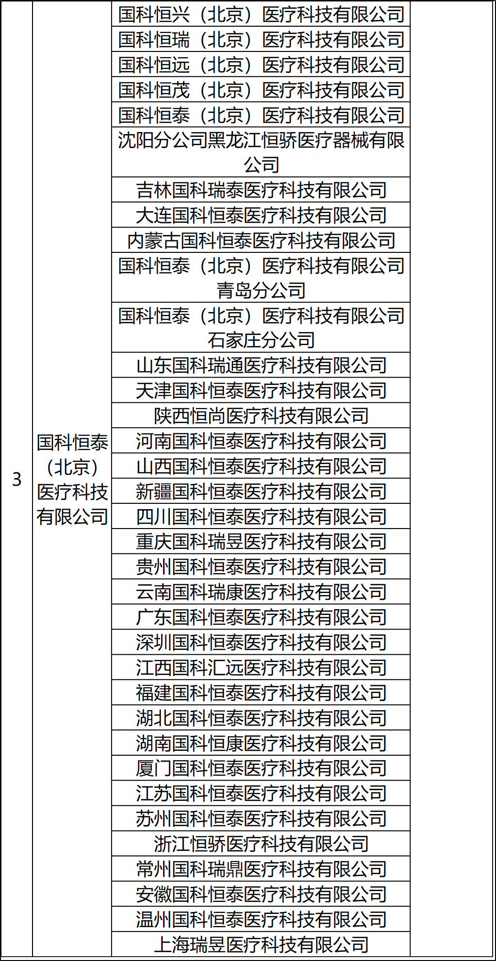 3、醫療器械生產企業或科工貿一體化的集團型企業設立的僅銷售本企業(集團)醫療器械的全資或控股商業公司:41家