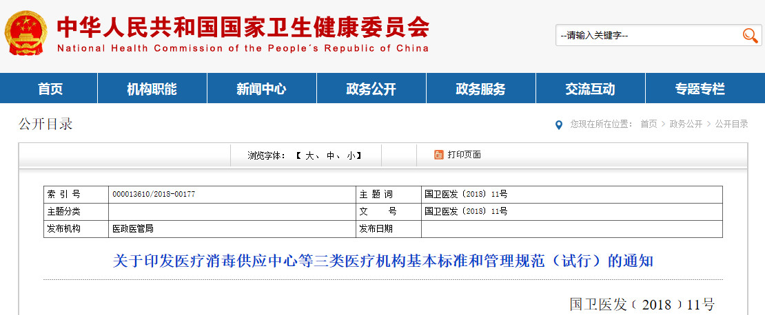 去年8月11日,國家衛計委在就“放管服”有關工作進展成效舉行例行發布會,明確再新增康復醫療中心、護理中心、消毒供應中心、中小型眼科醫院、健康體檢中心為獨立設置的醫療機構。而此次國家衛健委正式發布消毒供應中心、眼科醫院、健康體檢中心成為第三類醫療機構標準文件,意味著這項政策正式落地!