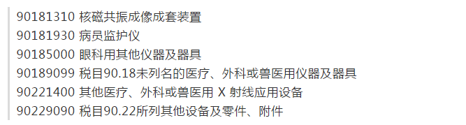 中國向美國征收關稅涉及的醫療器械類目,包括如下六項: