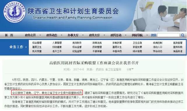 6月8日,陜西省衛(wèi)計委發(fā)布消息稱,高值醫(yī)用耗材省際采購聯(lián)盟新增湖南、遼寧、黑龍江三省,至此,加入該聯(lián)盟的省份已增加到了10個省份。