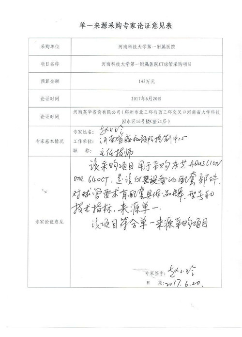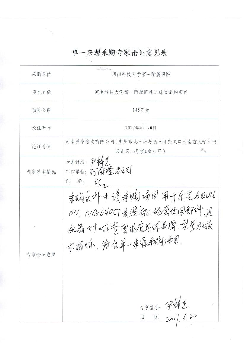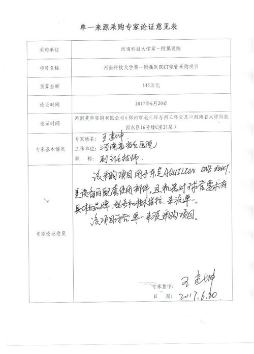 【河南】河南科技大學第一附屬醫院CT球管采購項目單一來源公示