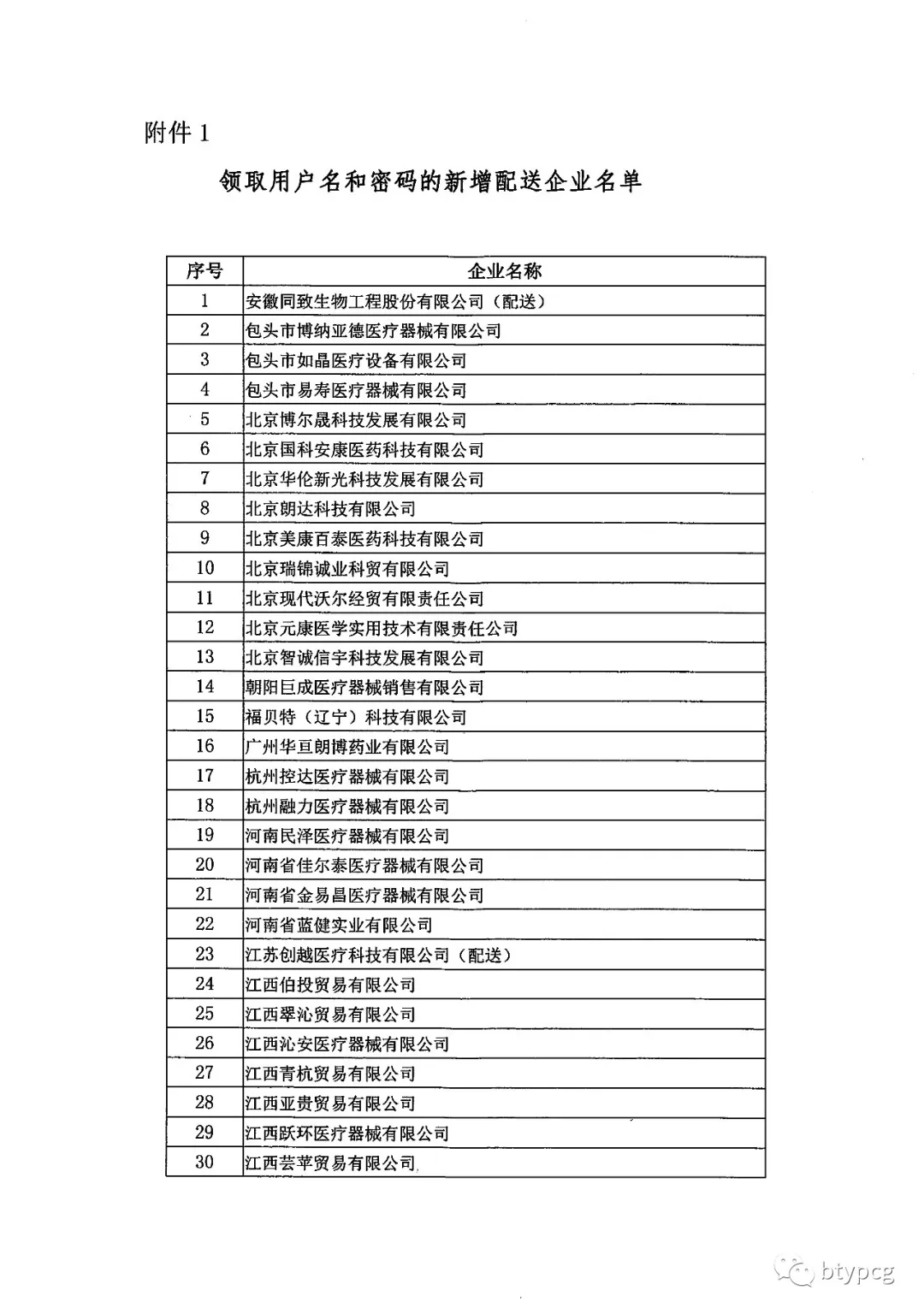 需要領取用戶名和密碼的新增配送企業名單(附件1)